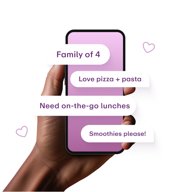We pull together groceries, healthy recipes, and ready-made meals tailored to what you love to eat.